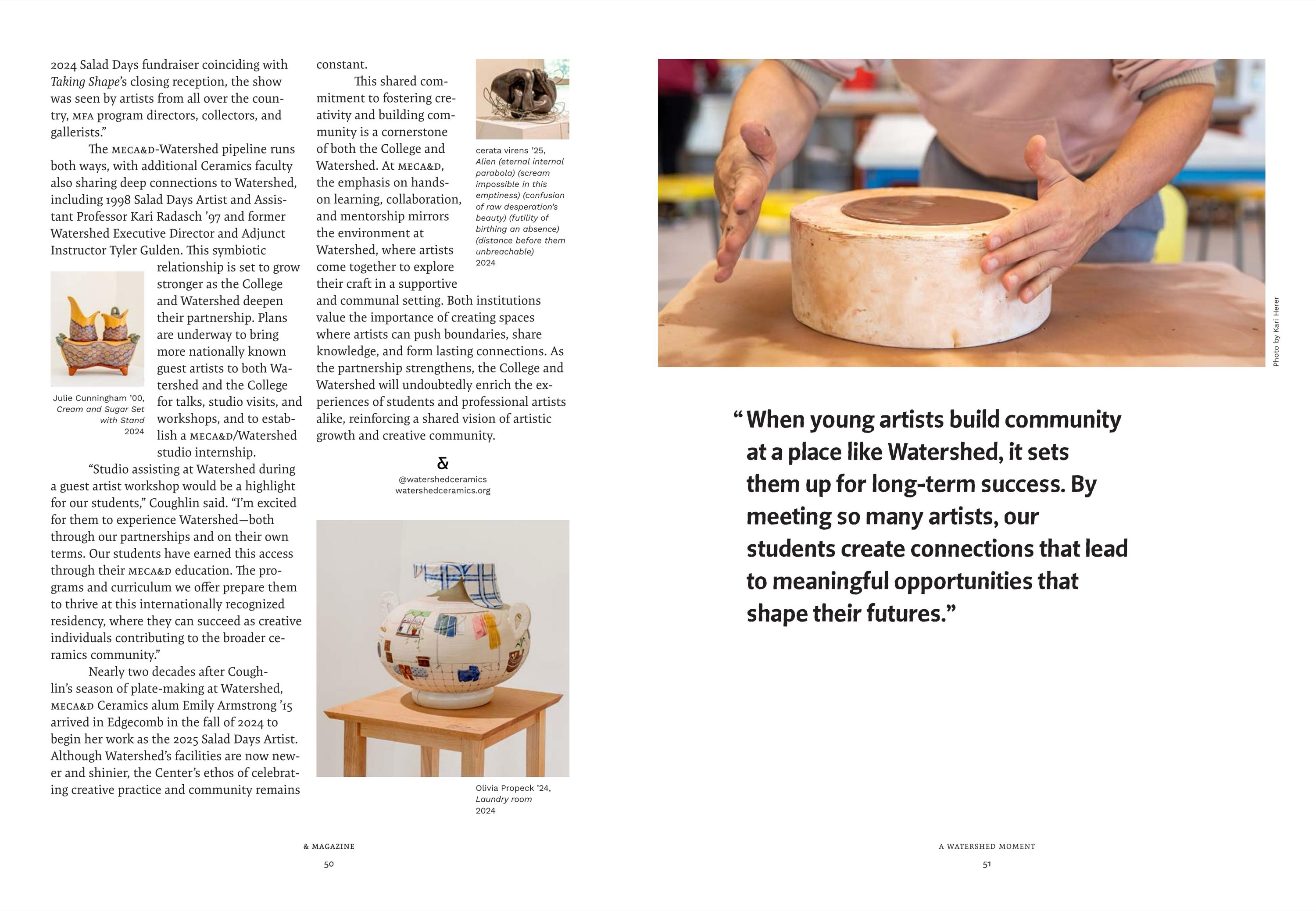Maine College of Art & Design's (MECA&D) third edition of & Magazine showcases the diverse network of artists, designers, and storytellers who are the fabric of the MECA&D community. & Magazine is an opportunity to connect more deeply with our varied audiences by presenting an in-depth range of stories—from the business of pottery, to landscapes that explore themes of economics and the American dream, to spectral photography connected to the land. Collectively, & Magazine highlights the unbridled creativity bursting forth from the College. As you dig in, the stories about artists, writers, curators, students, and educators give us hope that art and artists have the power to change how people think and inspire change.